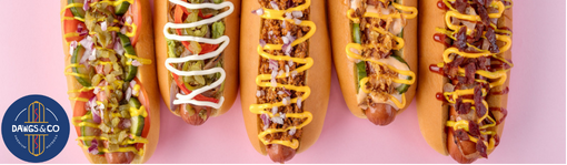 Yummy American premium hot dogs with a selection of signatures or create your own masterpiece by building your own hot dog!