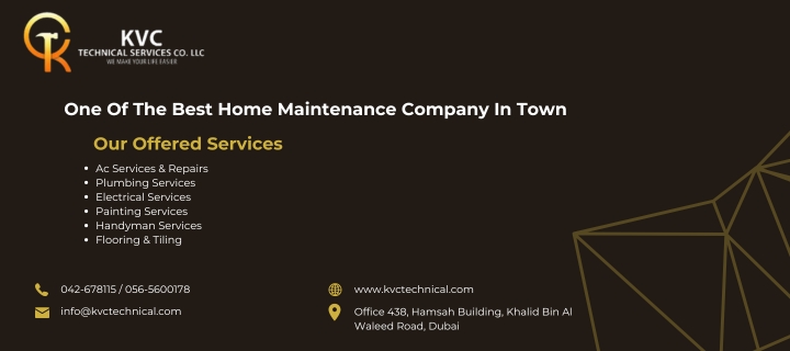 KVC Technical Services offers the best home maintenance services in Dubai for your house, villa and apartment. You’ve come to the correct place if you’re looking for a reputable home maintenance company in Dubai for any A/C Services, Handyman Services, Electrical Services, Plumbing Services, Painting and Carpentry Services. Your number-one choice in Dubai for the Top Home maintenance services. With years of experience and a dedication to quality, they take great satisfaction in providing dependable and effective home maintenance solutions that are customized to your needs.