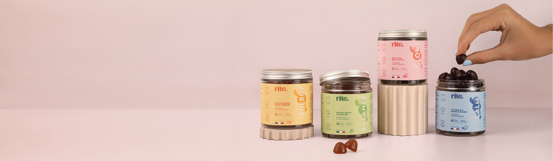 rite. is a UAE homegrown brand of clean, natural, beauty & wellness vitamin gummies offering 4 different benefits: GLOW, ENERGY, BALANCE & CALM