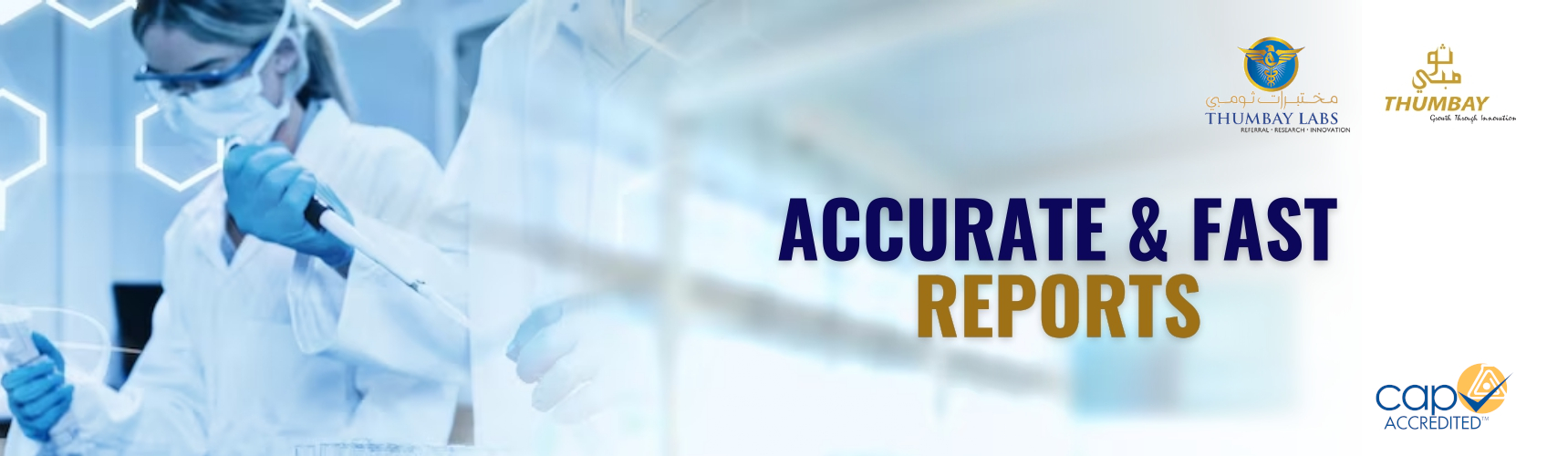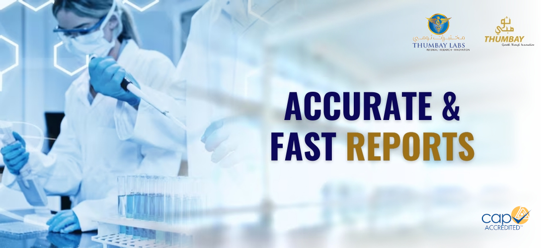 Thumbay Labs is one of the largest chains of ultramodern, comprehensive, fully automated laboratories in the UAE. Our Central Lab is built on over 25000 sq. ft. on the premises of Gulf Medical University, Thumbay Medicity, Ajman. It is the Referral Lab for the hospitals in Northern Emirates & Dubai. The lab has the test menu of more than 900 routine and special tests, and is conducting more than 3000 tests every day. Thumbay Labs is committed to accuracy and fast delivery of lab reports at affordable prices.